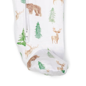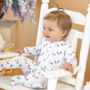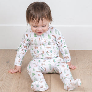 Our bamboo Footie Pajamas are designed for the best sleep and coziest snuggles. This one piece zipper pajama is made of soft and stretchy bamboo fabric, that is breathable and gentle on sensitive skin. This fabric is perfect to keep your littles warm and cozy in the winter, and cool in the summer. The double zipper makes diaper changes easy and convenient, even at 2AM. No snaps, buttons, or tags, this Footie Pajama is WHAT DREAMS ARE MADE OF.